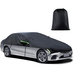 Universal Half Car Cover Waterproof All Weather, Black Car Covers for All Season Waterproof Dustproof Uv Resistant Snowproof